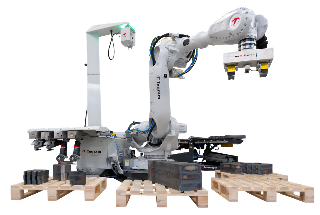 Ob EasyGrinder, EasyShotblast oder Systeme zum Be- und Entladen von Maschinen – alle Teqram-Produkte sind so konzipiert, dass sie sich Ihrem Bedarf anpassen. Kernstück: vision-gesteuerte Steuerung, modulare Greifer, Werkzeuge und intuitive Bedienung, damit Sie schnell starten können.