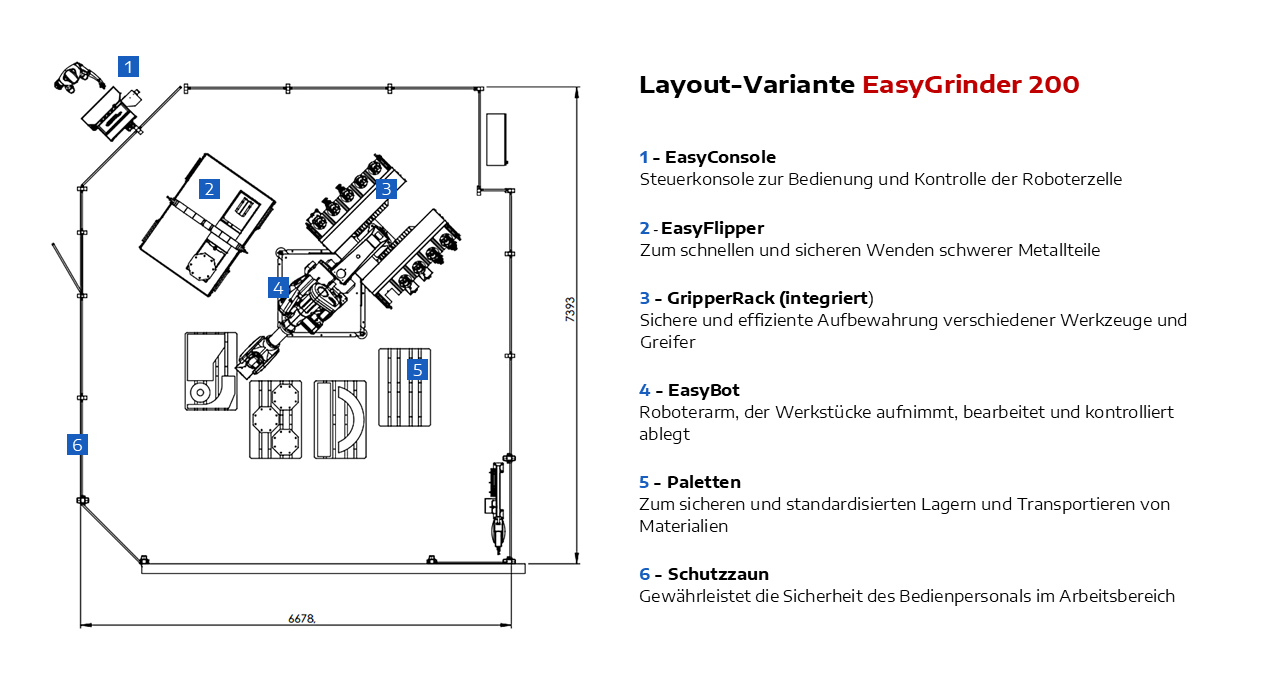Der EasyGrinder wurde speziell für Brennbetriebe entwickelt und bietet eine 100 % konstant hohe Bearbeitungsqualität – unabhängig von der Tagesform, Erfahrung oder Verfügbarkeit von Fachpersonal. Das Bedienpersonal wählt lediglich die gewünschte Bearbeitungsqualität in Form von Rezepten aus. Die Software entscheidet über die einzusetzenden Werkzeuge und Greifer und wechselt diese vollautomatisch.