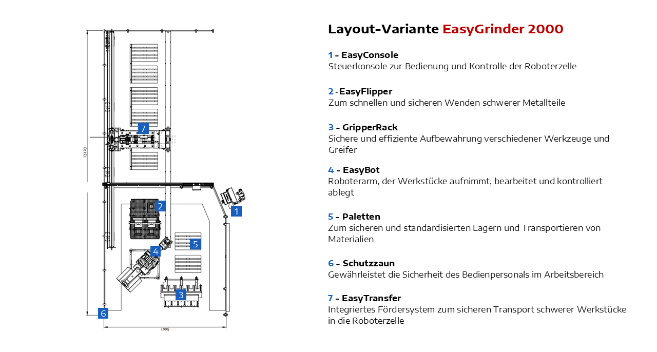 Systemfunktion: Roboter übernimmt die Bearbeitung, Handling erfolgt über das integrierte Easy-Transfer-System.