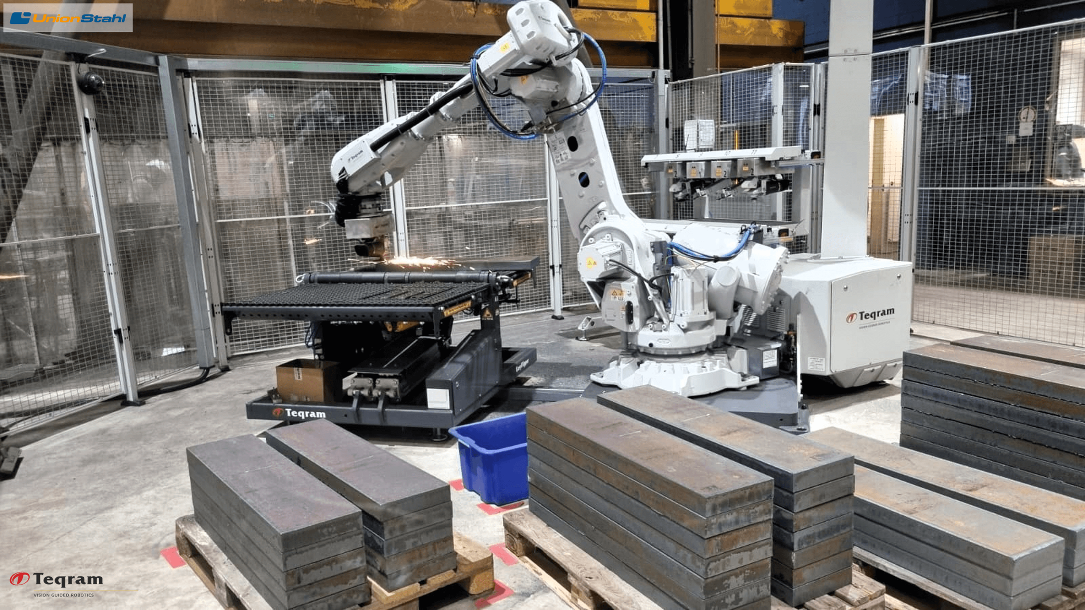 UnionStahl verputzt Brennteile jetzt vollautomatisch – ohne Programmierung – mit dem EasyGrinder von Teqram. Das spart nicht nur Zeit und Personal, sondern reduziert körperlich belastende Arbeit und erhöht gleichzeitig die Bearbeitungsqualität. Der Einsatz des EasyGrinders ergänzt bestehende Automatisierungslösungen und hebt die Nachbearbeitung auf ein neues Niveau.