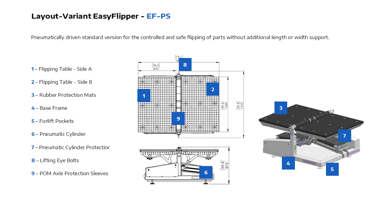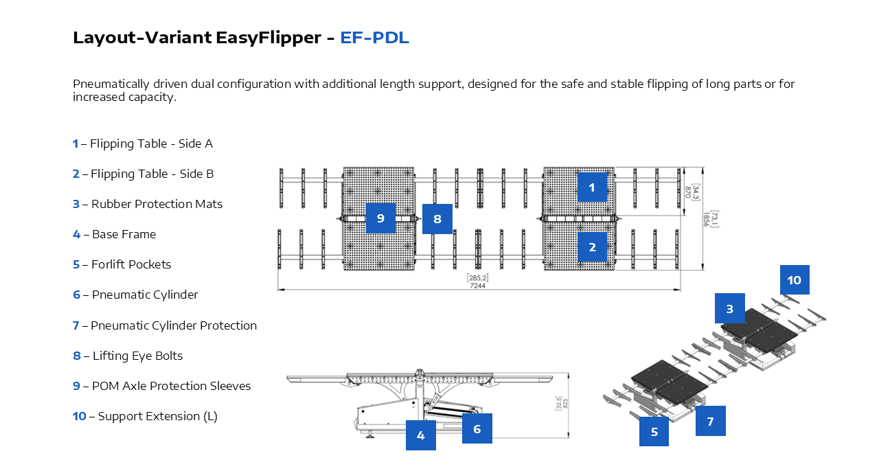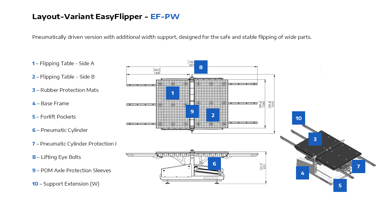 Are you looking for a safe, time-saving, and cost-efficient solution to flip heavy industrial components? The EasyFlipper is a smart flipping device that integrates seamlessly into modern manufacturing environments.